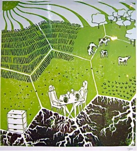 A big Hatch welcome to new artist, Juliet Darken! She makes fabulous original prints using the Linocut method. This involves carving into linoleum with super sharp tools and printing each color individually. Her originals range from $380-$460 and her prints of these are $40. We even have greeting cards of hers for $5! Juliet’s work is fun and whimsical… stop by to check them out!
