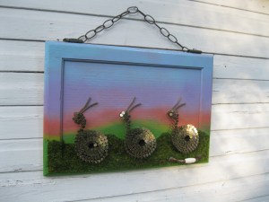 The Habitat ReStore Salvage Art Show is hung and ready for viewing! Stop by this month to check out our 3 participants; Bryan Richgels, Beth Heeney and Tammy Schreiter (yep, that’s me!).
